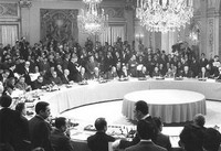 18 mars 1962 , à l’hôtel du Parc à Évian : Louis Joxe, Robert Buron et Jean de Broglie, les négociateurs désignés par le général de Gaulle, et le vice-président du GPRA (Gouvernement provisoire de la république algérienne ), Krim Belkacem, signent les accords qui mettent fin à 132 ans de colonisation et à 8 ans et demi de guerre.