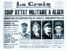Le putsch des généraux du 21 avril 1961, également appelé putsch d’Alger, est conduit par quatre généraux (Maurice Challe, Edmond Jouhaud, Raoul Salan et André Zeller).
